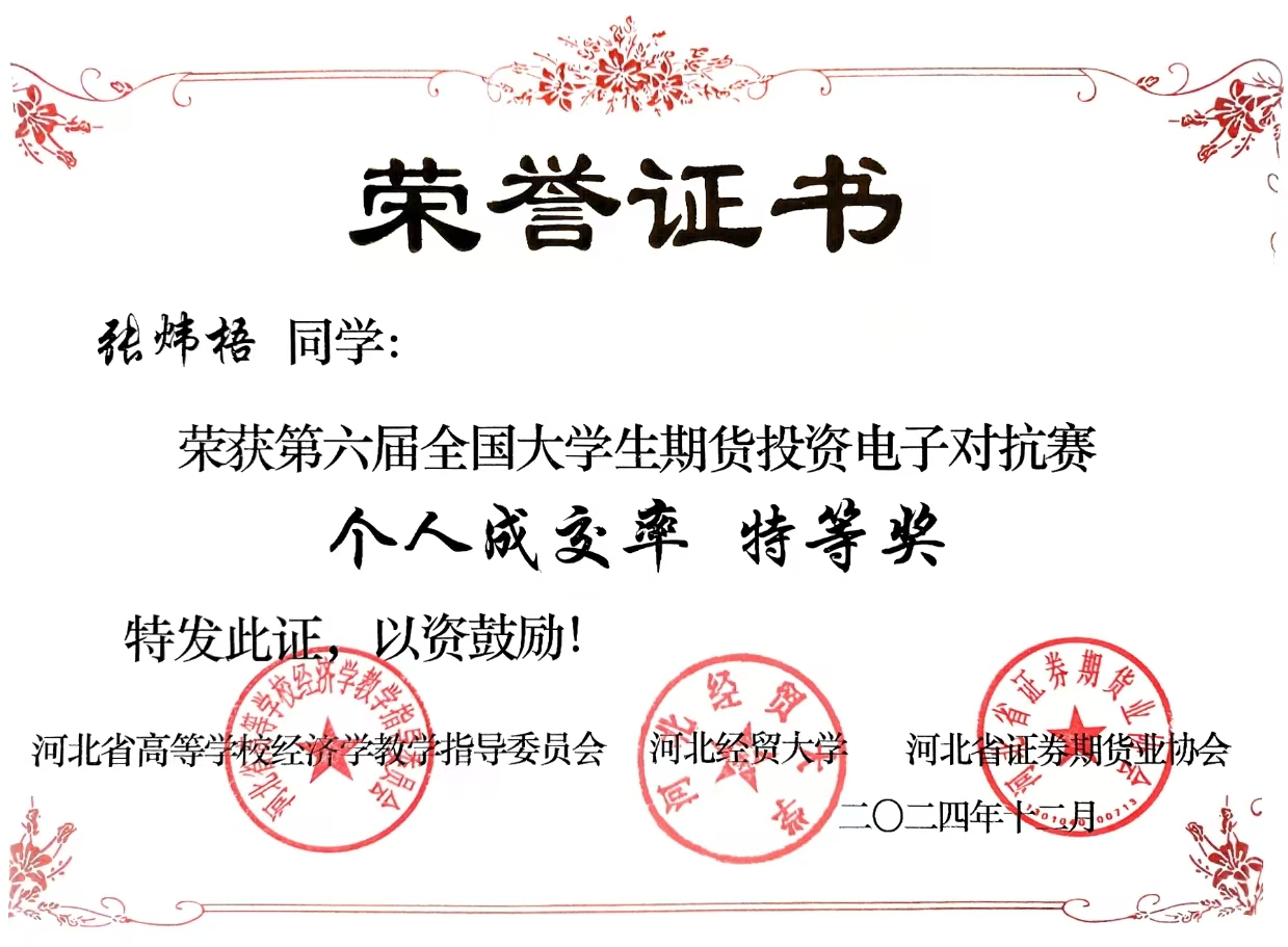 金融学子在第六届全国大学生期货投资电子对抗赛中取得佳绩
