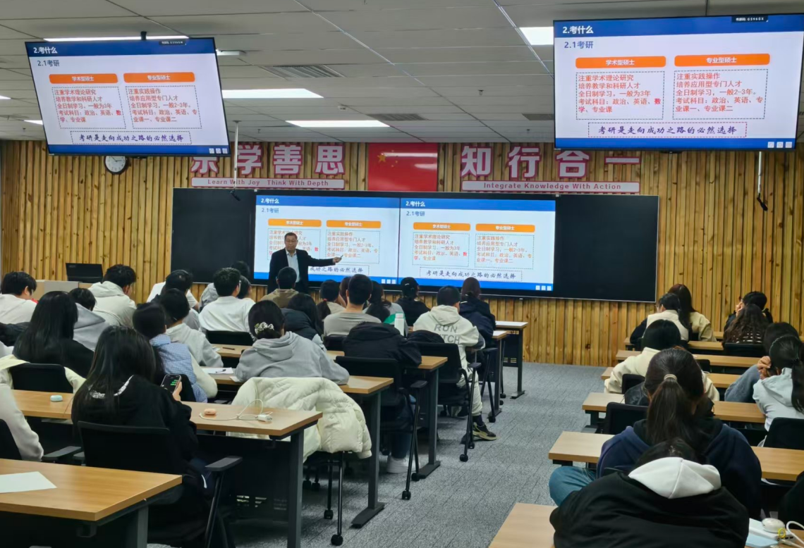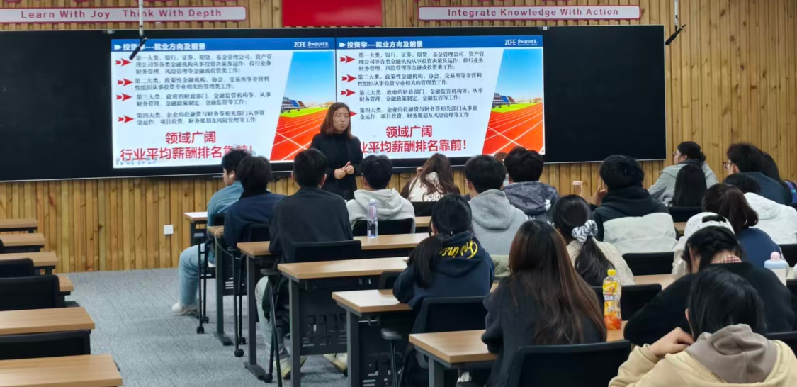 本次专业认知活动共分为专题讲座和人才培养方案解读两个环节。在专题讲座环节,张效梅以《在变革中重识金融,于坚守中成就卓越》为题从行业趋势、专业内核和大学规划三个方面面向投资学和金融科技专业学生进行了深入细致的讲解并解答了学生面临的专业困惑;杨贵仓以《坚定专业信心,增强专业自信》为题围绕金融行业发展趋势、金融本科专业现状、学生考研就业、坚定专业信心等方面为金融学本科专业新生进行了讲解。